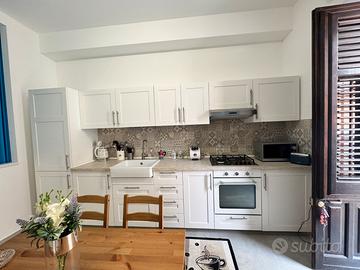 Grazioso appartamentino, situato al piano terra di una casetta al centro del paese, comprende una camera dal letto con tv e un ampio armadio, 1 bagno con bidet, doccia e lavatrice e una cucina abitabile dotata di ogni confort. Il terzo letto, su richiesta, è una poltrona letto. Dotato anche di asse da stiro, phon e prevede asciugamani e lenzuola e i dispositivi di sicurezza (estintore e rilevatore monossido di carbonio)