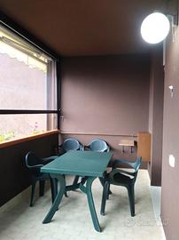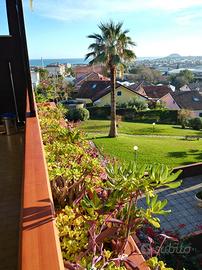 Ceriale, via Asti adiacente parco acquatico, 6 posti letto composto da ingresso, ampio soggiorno con angolo cottura, camera matrimoniale, cameretta e bagno, aria condizionata e ventilatori, grande terrazzo panoramico con vista mare isola Gallinara. Giardino condominiale. Affittasi da settembre a Giugno, 600€ mensili più utenze compreso Box. Ascensore fino piano Box