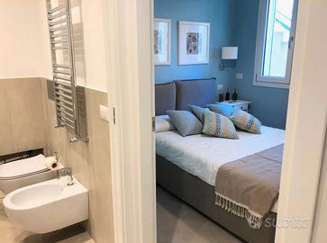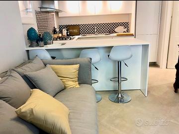 Questo appartamento con aria condizionata comprende 3 camere da letto, un soggiorno, una cucina con utensili, frigorifero, lavastoviglie, forno microonde/tradizionale, bollitore e macchina da caffè, e 2 bagni con bidet e doccia. Presso questo appartamento troverete asciugamani e lenzuola a disposizione.