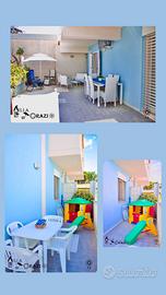 Vi diamo la possibilità di soggiornare presso un'ampia struttura completamente piano terra, climatizzata con ben 8 posti letto e due bagni . Con una superficie di ben 160 metri quadri di cui 80 solo di veranda attrezzata di tutto punto con vari angoli relax pensato per tutti