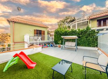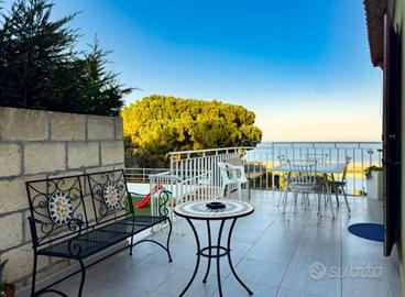 Casa indipendente con vista mare, corte esterna di circa 90 mq, giardino attrezzato, terrazza panoramica da dove poter ammirare l'alba, doccia esterna, casetta per attrezzi vari molto ampia acquistata 5 mesi fa, All interno la casa è dotata di ampie finestre tutte vista mare, condizionatori aria calda e fredda, cucina con annesso soggiorno, 2 camere da letto entrambe vista mare, 2 bagni di cui uno con doccia e lavanderia, posto auto privato . L acceso al complesso dov' é situata la casa é dotato di cancello automatico che garantisce sicurezza e tranquillità. Contattare solo se realmente interessati