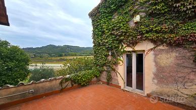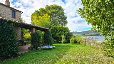 (Riferimento: Corbara02) Il Casale sul Lago La proprietà sorge sulle sponde del Lago di Corbara, un contesto magico dove la bellezza della natura e la tranquillità fanno da re, senza rinunciare alla vicinanza dei servizi e tanti bellissimi borghi nonché le due splendide città di Todi e Orvieto. Il casale, circondato da un giardino completamente recintato, nasce da un antico essiccatoio di tabacco, ora completamente ristrutturato da mani sapienti e con attenzione su ogni minimo dettaglio. La casa è attualmente divisa in due unità abitative con una superficie complessiva di 287mq distribuiti su due livelli e così composti: Al piano terra troviamo un ingresso con un bagno, un ampio soggiorno con camino, una cucina abitabile, entrambi con accesso diretto ad un ampio portico con vista sul lago. Al primo piano si accede sia da una scala interna, sia da una scala esterna, entrambe le scale ci portano in un salottino con una bellissima stufa a legna, da questo ambiente si accede alla zona notte composta da due camere matrimoniali con doppio affaccio, un bagno con doccia e una terza camera matrimoniale con bagno in camera e accesso ad una terrazza con vista panoramica. Tornando al piano terra, passando per una affascinate e scenografica serra, entriamo nel antico essiccatoio che ospita una stanza e un piccolo soggiorno con la scala che ci conduce al primo piano dove troviamo una cucina abitabile con accesso sul terrazzo panoramico e una camera matrimoniale con bagno in camera. Completamente arredato, riscaldamento a termosifoni, caldaia a gas (GPL), acqua comunale, panelli solari per l'acqua calda e aria condizionata. Posizione La proprietà gode di una posizione privilegiata in riva al lago ma a soli 5 minuti di auto da Civitella del Lago (un bellissimo borgo antico con viste mozzafiato e i servizi primari), ristoranti a 5min, Orvieto 20min, Todi 25min, autostrada A1 (Roma-Firenze) a 15min, stazione ferroviar