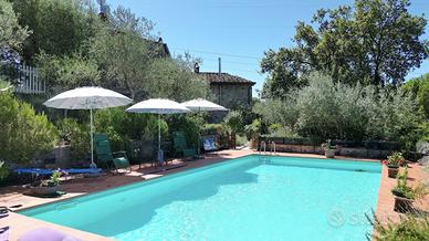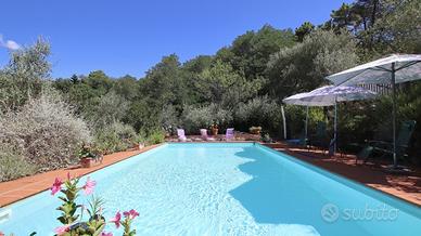 (Riferimento: IA04097) IA04097 - RUSTICO CON PISCINA TRA LUCCA E LA VERSILIA - Essegi Immobiliare propone in vendita una porzione di casa colonica situata in posizione collinare panoramica, tra Lucca e la Versilia. L'immobile fa parte di un caratteristico borgo composto da sole tre unità abitative e dispone di una bella piscina . La casa si sviluppa su due livelli: al piano terra si trovano un accogliente ingresso-soggiorno con caminetto, la cucina e una zona lavanderia/ripostiglio; al piano superiore una camera con bagno privato e una stanza armadi/sottotetto. La proprietà è circondata da circa 10.000 mq di terreno, garantendo privacy e tranquillità. Attualmente utilizzata per affitti turistici settimanali, rappresenta anche un'ottima opportunità di investimento. Richiesta € 350.000. N.B. La localizzazione non è esatta per motivi di privacy