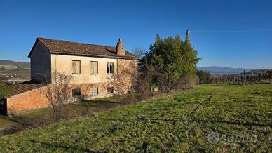 Al primo piano si accede attraverso un terrazzo coperto con vista panoramica sulla campagna (coperta di vigne), al interno troviamo un soggiorno con camino, 4 ampie camere ed un bagno, al pian terreno troviamo una vecchia stalla molto ampia e due cantine. Possibilità di creare un open space.