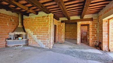 Piano terra: cucina abitabile, bagno, ripostiglio e doppio soggiorno con camino e accesso diretto sul un ampio (circa 60mq) e panoramico porticato con forno a legna e barbecue.
