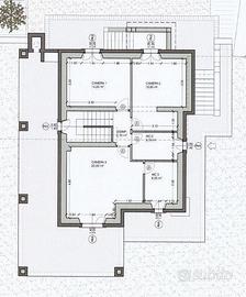 Piano primo: tre camere da letto, due bagni e ripostiglio. Il primo piano è raggiungibile sia dalla scala interna da una scala esterna.
