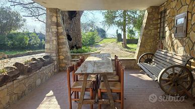 (Riferimento: MON41) ll Poggio Casale panoramico con attività B&B vicino Orvieto e Montecchio In posizione dominante, con splendida vista sulla campagna umbra, a pochi chilometri da Orvieto e a soli 5 minuti dall'antico borgo di Montecchio, proponiamo in vendita un caratteristico casale di circa 350 mq, attualmente adibito a Bed & Breakfast, circondato da circa 5 ettari di terreno. Il casale si sviluppa su due livelli ed è composto da 4 appartamenti indipendenti. Ogni unità dispone di una o due camere matrimoniali, bagno con doccia, soggiorno con camino, cucina e terrazza privata panoramica, ideale per pranzare all'aperto o godersi la tranquillità della campagna. Al piano terra si trovano inoltre una spaziosa sala da pranzo con camino, una cucina attrezzata, un tinello e un WC di servizio, perfetti per la gestione dell'attività ricettiva. Spazi esterni Il casale dispone di un ampio portico panoramico affacciato sul giardino e di un cortile attrezzato con due forni a legna e barbecue, ideale per momenti conviviali all'aperto. La proprietà è circondata da un giardino con area giochi per bambini, parcheggio, una piscina e un campo da calcetto, il tutto immerso nella quiete della campagna con una vista mozzafiato sulle colline umbre. Impianti Allaccio acqua comunale Gas GPL con serbatoio interrato Riscaldamento a termosifoni Posizione La posizione combina tranquillità e comodità nei collegamenti: Uscite autostradali: Attigliano 20min, Orvieto 15min; Stazioni Ferroviarie: Alviano 12min, Orvieto a 25min; Aeroporti: Roma circa 1h 40min, Perugia 1h; Servizi: Il vicino borgo di Montecchio, a soli 5minuti, offre tutti i servizi essenziali: ristoranti, negozi, farmacia, banca, ufficio postale e centro medico; Le affascinanti città di Orvieto (25km) e Todi (35km) e Roma (105 km) sono facilmente raggiungibili. Soluzione ideale per proseguire l'attività ricettiva in una delle zone più suggesti