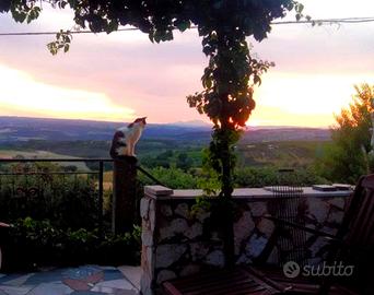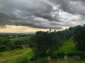 (Riferimento: MON24-1-1-1) casale panoramicissima con uliveto Nella bellissima Umbria, a soli 25min da Orvieto e 10min dai servizi, proponiamo un casale panoramico con uliveto. Il casale si sviluppa su tre piani, con cantine e garage al piano semi-interrato, due appartamenti indipendenti (circa 90mq l'uno e possono essere uniti realizzando una scala interna) posti al piano terra e al primo piano, entrambi gli appartamenti sono composti da un ampio soggiorno con cucina a vista, camino e accesso al terrazzo/o al balcone panoramico, due camere matrimoniali e un bagno. Molto luminosi, molto panoramici. Di fronte alla casa, con accesso diretto dalla cucina, troviamo una terrazza panoramica con un bellissimo pergolato (con un tavolo lungo per splendidi pranzi e cene...), un forno a legna, un giardino ricco e colorato e per a coronare l'opera, nascosta tra i 70 ulivi, troviamo anche una piscina fuori terra (possibilità di realizzare anche una piscina interrata) Località: La proprietà si trova in cima ad una collina alla confine della piccola frazione di Pozzo Colino (TR),10min da Guardea e Montecchio dove si trova il più necessario, 25min da Orvieto, Todi 35min, Roma e Aeroporti circa 1h 30min, Autostrada A1 25min, Stazione FS 10min.