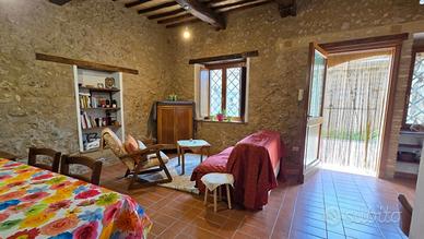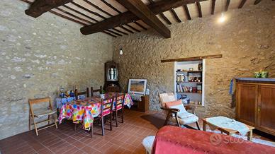 Il casale si sviluppa su due piani con due appartamenti indipendenti al piano terra di 56 e 65 mq commerciali, ciascuno con un'ampia camera matrimoniale, un bagno con doccia e un soggiorno con angolo cottura. Completano il piano terra due cantine, un ripostiglio e un forno a legna.