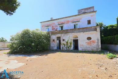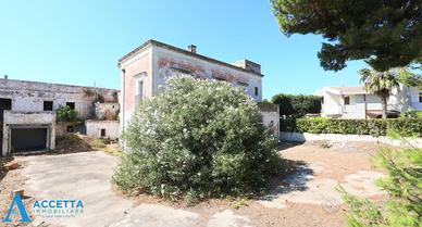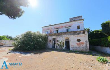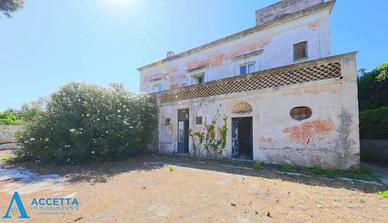 (Riferimento: 250) Proponiamo in vendita a Taranto in località Lama, un caratteristico Casale d'Epoca a Due Passi dal Mare. Situato in una delle zone più suggestive di Taranto, a soli 550 metri dal mare, nella tranquilla contrada Carelli, il casale si sviluppa su due livelli, per una superficie catastale di circa 670 mq., distribuiti in ambienti ampi, molti dei quali presentano caratteristici soffitti a volta, oltre una grande terrazza al primo piano; mentre al piano interrato troviamo una cantina di circa 150 mq., catastali, che rappresenta un ulteriore spazio da sfruttare. La proprietà si completa con un' ampia area giardinale esterna che avvolge il casale, provvista di un accesso carrabile da strada privata ed un accesso pedonale da Via Girasoli. Questa struttura immobiliare rappresenta un'opportunità per imprenditori o privati, che desiderano intraprendere un progetto di ristrutturazione; ideale sia per la realizzazione di una struttura ricettiva o per una o più residenze.