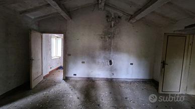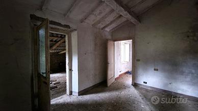 Il casale (circa 180mq) su due livelli ha una scala esterna che porta al piano residenziale con tre camere, una cucina ed un bagno. Il piano terra (dove una volta c'erano le cantine) è diviso in quattro grandi ambienti con un forno esterno.