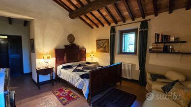 Al primo piano troviamo 4 camere matrimoniali, ognuno con bagno in camera e cabina armadio. La camera padronale e anche dotato da un loft/ studio, un bellissimo camino ed ingresso privato dalla scala esterna con un terrazzino e vista su Todi. Nella torre, al secondo piano, troviamo la sesta camera matrimoniale, anche essa con bagno in camera e armadio a muro.