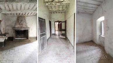 Al piano terra (250mq lordi) troviamo antiche cantine e stalle, attualmente divisi in 6 ambienti, ed al primo piano (225mq lordi), con accesso attraverso un piccolo ponte, troviamo un ampio disimpegno, quattro camere da letto, una ampia cucina con camino, una dispensa ed un ripostiglio. Da ristrutturare. Possibilità di costruire una piscina ed una dependance. Progetti e preventivi in agenzia.
