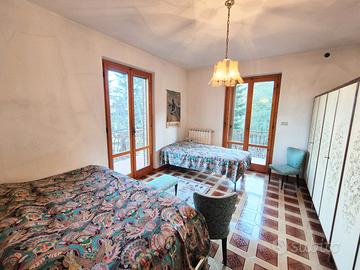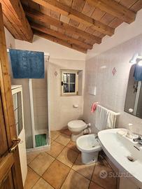 La seconda porzione si sviluppa su più livelli, al piano terra un grande ingresso conduce a un soggiorno ampio e luminoso con accesso diretto al giardino, una sala da pranzo con camino, una cucina separata e a un bagno di servizio con doccia, salendo al piano primo si trovano una camera padronale con doppio accesso al terrazzo, una seconda camera anch'essa con uscita sul terrazzo, una terza camera matrimoniale e il bagno principale con vasca e all'ultimo livello, un'ampia soffitta offre ulteriori possibilità di utilizzo.