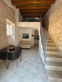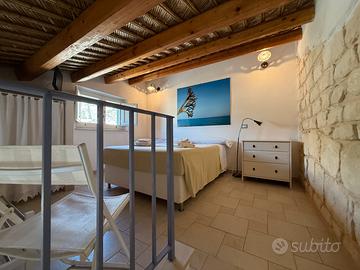Disposta su due livelli: al piano inferiore camera da letto con bagno completo di doccia, sul soppalco cucina attrezzata e luminosa con 2 velux al tetto tipico in canne e gesso.