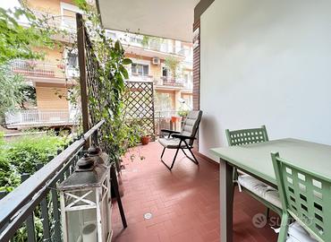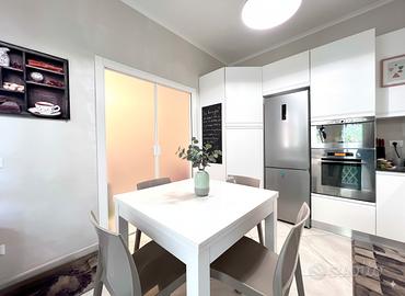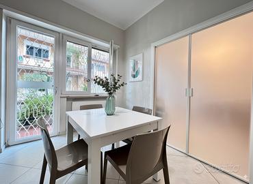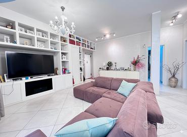 L'immobile, finemente ristrutturato e caratterizzato dal triplo affaccio, si compone di un salone doppio con accesso al balcone perimetrale, una comoda cucina abitabile, tre camere da letto, doppi servizi e due disimpegni con armadi a muro.