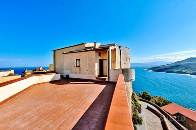 Nel cuore storico di Castelsardo, all'interno delle antiche mura di un castello del XII secolo, proponiamo in vendita una proprietà unica nel suo genere, di circa 230 mq complessivi, ricca di fascino storico e con suggestiva vista mare. L'immobile si sviluppa su più livelli e conserva elementi architettonici originali, tra cui pavimentazioni antiche, travi storiche in legno e una scenografica scala interna ricavata all'interno dell'antica torre medievale. Un dettaglio davvero raro: una delle cucine è situata proprio nella torre, mentre la seconda si distingue per i pavimenti in legno e le travi d'epoca. Completa la proprietà una splendida terrazza panoramica di circa 45 mq con vista sul mare e sul corpo centrale del castello, ideale per momenti di relax, cene all'aperto e convivialità. Composizione: 4 camere da letto 2 salotti 2 bagni 2 cucine (di cui una nella torre storica) ripostiglio scala interna nella torre medievale terrazza panoramica vista mare di circa 45 mq L'immobile conserva numerosi dettagli autentici ed è parzialmente arredato. Grazie alla sua distribuzione interna, la proprietà può essere facilmente suddivisa in due appartamenti indipendenti, entrambi con vista mare, risultando ideale sia come residenza esclusiva sia come investimento turistico-ricettivo. Una soluzione irripetibile, dove storia, panorama e fascino architettonico si fondono in un contesto unico. Immobile proposto in collaborazione con REXER.