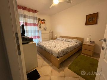 Spazioso bilocale completamente arredato, al piano terra, composto da soggiorno con cucinotto, camera matrimoniale (capacità 2 letti matrimoniali), bagno con finestra, due comode logge oltre ampia corte/giardino corredata da pergotenda.