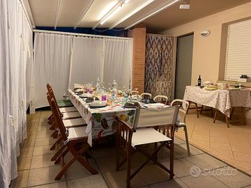 L'esposizione della corte/giardino verso ovest unita alla protezione della loggia consentono una godibilità di tale spazio in buona parte dell'anno, inoltre l'utilizzo della pergotenda, oltre a consentire una buona privacy, crea una vera e propria zona giorno aggiuntiva molto apprezzata nella bella stagione.