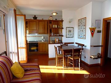 CECINA residenziale, zona COOP, appartamento composto da soggiorno, cucina, due camere, bagno, terrazza pranzo sul soggiorno e balcone sulla camera, oltre ad ampia taverna ristrutturata come nuova con altro bagno regolare al piano terra.