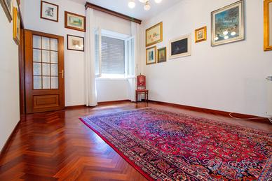 Presenta in tutte le stanze, esclusi i servizi, un bellissimo parquet in mogano tenuto alla perfezione.
