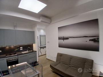 luminoso appartamento con 3 lati luce, al primo piano di una elegante palazzina di sole 3 unità, 50 metri dall'isola pedonale e da un ampio parcheggio gratuito, posizione eccellente per tutti i servizi. L'appartamento ha pavimento in parquet e riscaldamento a pavimento, composto da soggiorno cucina con divano letto, camera con letto matrimoniale e balcone, soppalco, bagno finestrato con box doccia. La casa è completa di tutti i confort: