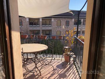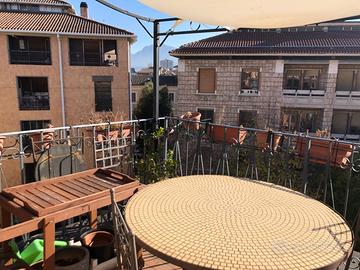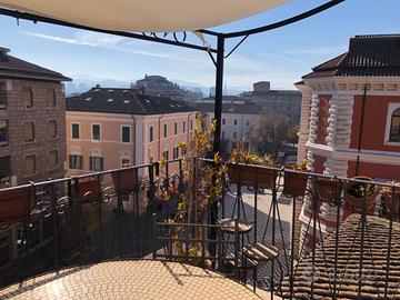 In pieno centro, in palazzo storico , proponiamo meraviglioso attico di ampia metratura , ristrutturato,con due terrazzi abitabili, posto al secondo ed ultimo piano con ascensore così composto: ingresso che conduce direttamente ad un primo soggiorno, adiacente lo studio dal quale si accede ad un altro ampio salone con camino, la cucina abitabile e un bagno di servizio, tramite una scala si sale al primo piano con una camera matrimoniale,altra camera con balcone , comoda cabina armadio , bagno con vasca idromassaggio e doccia termale e terrazzo di 12 mq con affaccio sulla piazza. Salendo all'ultimo piano troviamo una grande camera da letto con annesso salotto, bagno con doccia ed infine un magnifico terrazzo di circa 45 mq da cui si gode un panorama unico con il massimo della privacy. Rifiniture di pregio , parquet in tutti gli ambienti. Compreso nel prezzo gli arredi della cucina Termo autonomo. Cantina Per info Maria Teresa