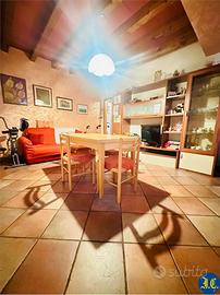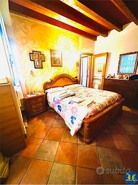 L'abitazione, con travi in legno a vista, è composta da soggiorno con angolo cottura con ripostiglio, disimpegno, bagno con doccia, camera matrimoniale e terrazzino semicoperto.
