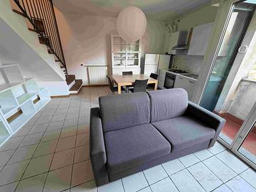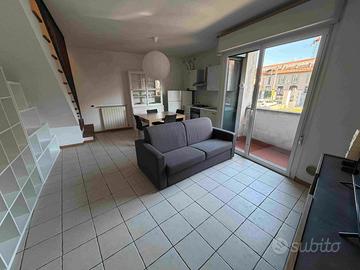 Centralissimo, in residence fronte Fiume, caratteristico appartamento arredato, disposto su due livelli (p. 1°+mans. ), composto da soggiorno con cucina a vista, disimpegno, doppi servizi, cabinetta armadio e camera matrimoniale. Box singolo e cantina. Termoautonomo. Spese condominiali mensili euro 150/00. Disponibile immediatamente