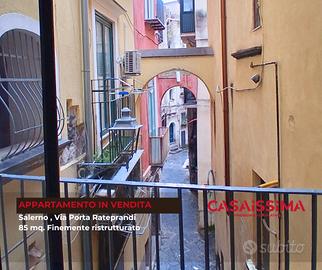Nel cuore pulsante dei Mercanti, a pochi passi da Largo Campo e dal Teatro Augusteo, proponiamo un esclusivo appartamento di circa 85 mq situato al primo piano di un palazzo storico. L'immobile è stato oggetto di una ristrutturazione totale e raffinata, capace di coniugare il fascino millenario di un'autentica colonna romana a vista con le più moderne tecnologie abitative. La casa è infatti dotata di domotica integrata, riscaldamento a pavimento e impianto di climatizzazione, garantendo un comfort assoluto in un contesto di immenso valore storico. L'immobile gode di una doppia esposizione e di numerosi punti luce distribuiti in tutti gli ambienti, potendo contare su due balconi e diverse finestre che garantiscono un eccellente ricircolo d'aria. La distribuzione interna è razionale e ben divisa: con ingresso, una cucina indipendente, ampio e luminoso soggiorno che costituisce il cuore della zona giorno. Il piano principale ospita inoltre una camera e un bagno padronale, mentre un elegante soppalco accoglie la seconda zona notte, composta da una camera riservata e un secondo bagno dedicato. Vivere in questa residenza, significa immergersi nella storia più autentica di Salerno godendo di un lusso contemporaneo e sofisticato. È la soluzione ideale per chi cerca un investimento di prestigio nel nucleo storico della città. Classe Energetica "F" Prezzo € 239.000,00