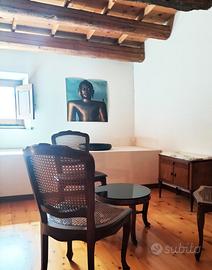 Nel centro storico, in un palazzo d'epoca, nei pressi dell' università, affitto appartamento su due piani, arredato e attrezzato, subito abitabile, ristrutturato, composto da luminosa camera doppia di 30mq, ampio bagno, cucina, sala, ripostiglio, piccolo balcone. Camera fornita di arredo, cucina abitabile completa di stoviglie e piccoli elettrodomestici, frigo, cucina a gas con forno. Lavatrice e asciugatrice, infissi con doppi vetri e zanzariere. Bagno con vasca e bidet. Riscaldamento autonomo con stufe elettriche a basso consumo. Aria condizionata. Riserva idrica. Posto bici. Non si ammettono animali perché alcune finestre danno direttamente sui tetti. Spese non incluse: luce e gas. Sono richieste €50mensili per altre spese (acqua, tari, ecc). Contratto di locazione transitorio per fuori sede, trasfertisti o studenti. No fumatori.