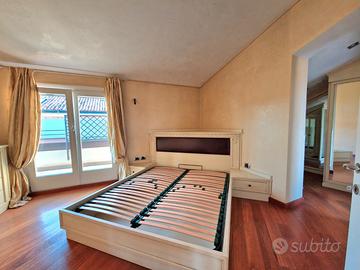 Al secondo livello, nel sottotetto, un'altra spaziosa camera matrimoniale si distingue per i suoi ampi volumi e per la luce che filtra attraverso le velux, creando un'atmosfera di intimità e fascino. Il bagno finestrato, anch'esso ricercato, completa l'esperienza abitativa con una funzionalità che non rinuncia allo stile.