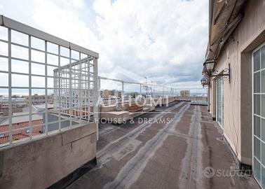 Vendiamo nel quartiere di Stampace al 6° piano panoramico di un palazzo degli anni '60, un ampio appartamento di 195 mq catastali dotato di grande terrazza a livello panoramica. L'immobile è dotato di un garage privato al piano interrato (rara pertinenza da reperire in zona), collegato direttamente con l'ascensore. L'appartamento è composto da ingresso su ampio doppio soggiorno, dotato di tre porte finestre panoramiche, 3 camere, due bagni, piccola lavanderia, cucina abitabile, grande terrazza a livello con ulteriore soggiorno (come una dependance) con vetrate sulla terrazza. Immobile estremamente luminoso da ristrutturare.
