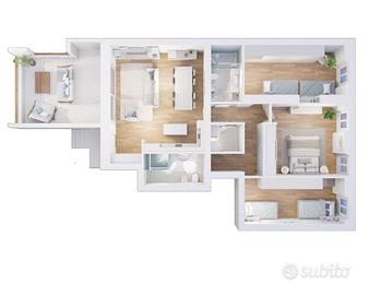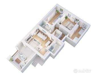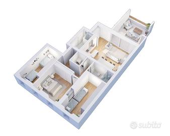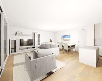 Soluzione perfetta per famiglie che con i suoi 120 mq comprendenti soggiorno, cucina a vista, disimpegno zona notte, 3 camere doppie, due bagni finestrati, lavanderia e generosa terrazza esclusiva.
