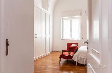 L'appartamento si compone di ampio ingresso, soggiorno, cucina abitabile con in adiacenza prima ampia terrazza a livello, ottima per pranzi e cene conviviali, disimpegno, due camere e doppi servizi al piano primo; al piano secondo ampio locale multiservizio (studio/sala hobby/sala cinema) con bagno/lavanderia e seconda importante terrazza a livello da destinare a solarium. Al piano terra un comodo box auto che risolve il problema parcheggio tipico dei centri storici.