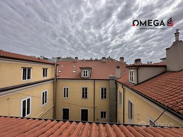 Signorile palazzo d'epoca ubicato nel centro storico di Trieste, a due passi da Ponterosso, le Rive e Piazza Unità d'Italia. Appartamento sito all'ultimo piano con introvabile lastrico solare, risulta silenziosissimo in quanto non affaccia su strada. Internamente si caratterizza da ampi spazi abitativi, movimentati grazie a soffitti alti, zone soppalcate e mansardate e la presenza sia di finestre che di abbaini e lucernai. Atrio d'ingresso, ampio salone molto luminoso in quanto servito da tre finestre, ampia zona pranzo con cucina. Camera padronale con bagno di servizio, armadio e zona letto sul soppalco finestrato. Seconda camera con letto soppalcato. Ampio bagno completo finestrato con vasca idromassaggio, ripostiglio e soffitta. Lastrico solare di proprietà di 120 mq recentemente rifatto con splendido affaccio sul centro cittadino e Castello di San Giusto. Ottime condizioni interne, riscaldamento autonomo, infissi in pvc, climatizzato, travi a vista. Riferimento: Roma C.E.: In fase di definizione