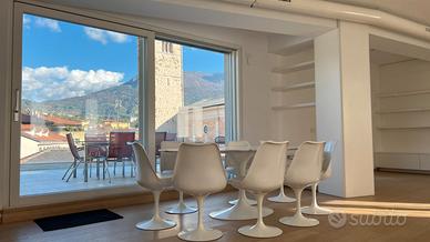 Nel cuore del centro storico, a pochi passi dall'imponente e caratteristica Piazza Duomo, proponiamo in vendita esclusivo attico con terrazzo con vista panoramica sui tetti del centro e sulla collina di Trento. L'immobile di 180 mq calpestabili si sviluppa su un unico livello ed è posto a 5° piano in un contesto servito da ascensore. L'ampio e splendido terrazzo di 60 mq con vista spettacolare sulla basilica di Santa Maria Maggiore rende unica questa soluzione. L'appartamento si distribuisce in modo funzionale con l'ingresso nella zona giorno composta di un grande atrio, un luminoso soggiorno con ampie vetrate e una cucina abitabile entrambi con affaccio sul terrazzo; il corridoio introduce la zona notte con una camera matrimoniale dotata di cabina armadio, due stanze di grandi dimensioni e due bagni finestrati oltre ad una spaziosa lavanderia con lavello ed ampia cabina armadio. La proprietà si completa di una grande cantina, due comode soffitte ed un garage (nelle prossimità del palazzo). L'appartamento si presenta in ottime condizioni, completamente ristrutturato nel 2015, sfruttando tutte le potenzialità dell'immobile, con pavimenti in legno pregiato a listoni, impianto di allarme perimetrale e volumetrico, riscaldamento a pavimento, raffrescamento canalizzato, tapparelle elettriche con sistema di domotica. Termoautonomo. Informazioni riservate in ufficio. Prezzo di vero interesse. Classe energetica D (147,49 kWh/mq)