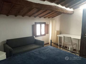 CENTRO STORICO ZONA PROVENZANO Proponiamo in piccola palazzina al terzo ed ultimo piano un grazioso appartamento in stile tipico toscano con travi a vista, di circa 65 mq. L'immobile si compone da soggiorno con camino ( non funzionante ma di solo uso estetico), cucina abitabile con frigo ad incasso e fornelli a gas, due camere da letto , matrimoniale e singola finestrate e dotate entrambe di armadio e scrivania, infine bagno con box doccia. Impianti a norma, caldaia revisionata di recente, termo autonomo. Non si richiedono volture a proprio nome. Nelle spese condominiali a carico dell'inquilini è compresa, altre luce e pulizia spazi comuni, la quota acqua a consumo con lettura con sottocontatore. No residenza. Al momento della richiesta di informazioni per telefono o email è gradita una presentazione della facoltà svolta così da agevolare le visite.