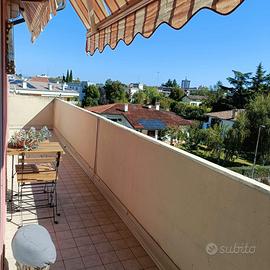 Cervignano, via Sarcinelli, in palazzina anni '90 spazioso appartamento (160 mq.) al terzo e ultimo piano, su due livelli con garage e cantina. Al primo livello ampio soggiorno con caminetto, cucina abitabile, due bagni entrambi finestrati, due comode camere da letto e due belle terrazze. Al piano sottotetto (altezze praticabili) altro bagno completo e due ampie stanze utilizzabili. Il piano sottotetto, è collegato al primo livello tramite scala in legno, ma, all'occorrenza, può essere reso indipendente, avendo anche un ingesso proprio. L'appartamento, in buone condizioni generali è ideale per chi desidera ampi e comodi spazi, una vista spettacolare oppure, utilizzando il sottotetto, desidera ricavarsi una zona esclusiva per le proprie attività (ufficio, palestra ecc...).