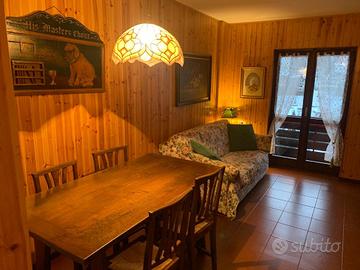 In perfetto stile montano, soggiorno con camino, cucina a vista ed ampio terrazzo (con una fantastica vista sul paese e le montagne che lo circondano), camera con letto matrimoniale e castello (in aggiunta divano letto), bagno con cabina doccia e bidet.