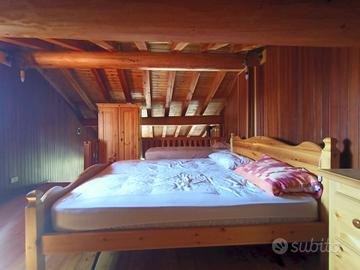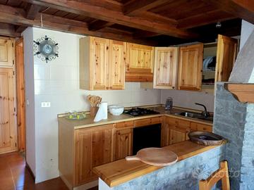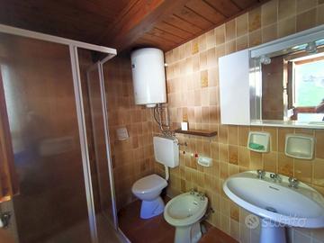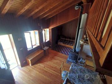 L'alloggio è composto da un ampio soggiorno con angolo cottura, un ripostiglio ed un bagno. Inoltre, un grande soppalco con camera matrimoniale è raggiungibile tramite la scala interna in legno. Le finiture in legno e il camino conferiscono all'ambiente un'atmosfera calda e accogliente, perfetta per chi cerca un rifugio in montagna. Completano la proprietà il Balcone panoramico, i serramenti in doppio vetro per un miglior isolamento termico e acustico e terrazzo e giardino interni alla proprietà ma in comune con gli altri appartamenti.