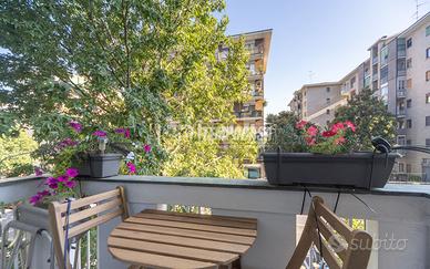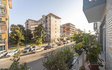 L'ingresso conduce a un luminoso soggiorno affacciato su Via Piranesi, valorizzato da una splendida balconata esposta a sud, ideale per godere della luce naturale durante tutto l'arco della giornata. Sul lato opposto, si trova una spaziosa cucina abitabile, dotata di una doppia finestra e accesso a un balcone, oltre a una moderna isola centrale completa di elettrodomestici.