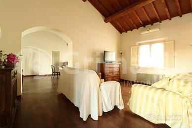 A 4 km da Siena e a 5 minuti di autio dall'ospedale, in contesto di alto livello proponiamo appartamento al piano rialzato (2 scalini) con ingresso indipendente, salotto, sala doppia con camino, cucina avitabile con ripostiglio-lavanderia, quattro camere e tre bagni.