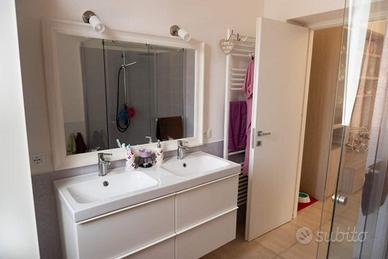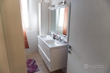 BAGNO con box doccia in cristallo 8 millimetri, specchio di pregio in legno intagliato, finestra grande e luminosa, due luci sopra lo specchio (una calda e una fredda azionabili separatamente)