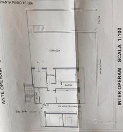 Appartamento -piano terra rialzato- con doppio ingresso, il primo su via mura dei francesi ed il secondo da via Bologna(indipendente), 94mq escluse aree scoperte (tot.112), più terrazzo da 90 mq circa e relativi posti auto interni (circa 4 auto) indipendenti (entrata dal cancello di via Bologna). Acquistabile interamente od in due unità separate. Gli interni sono da ristrutturare. Al momento NO AGENZIE cortesemente. Prezzo trattabile.