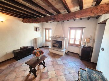 Al piano rialzato si trova l'ingresso; salendo al primo piano si apre un accogliente soggiorno con camino e angolo cottura, oltre a un bagno con vasca, il piano superiore ospita una luminosa camera matrimoniale con soffitto alto e travi a vista.