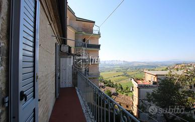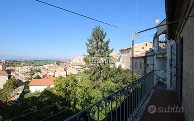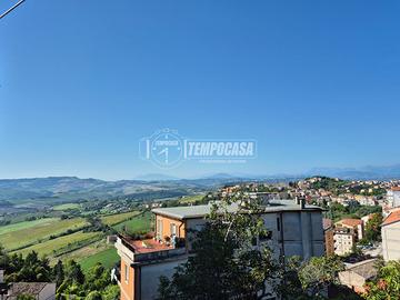 Soggiorno con uscita sul balcone vista Monti Sibillini, cucina abitabile, due camere matrimoniali entrambe con uscita sul balcone e bagno finestrato.