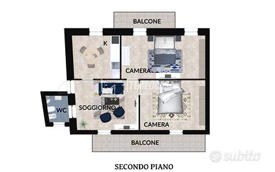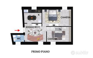 Soggiorno, cucina abitabile, due camere matrimoniali e bagno finestrato.