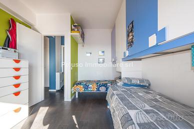 La zona notte è composta da una camera padronale e una cameretta con balcone dove continua una moderna selezione di colori.