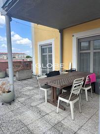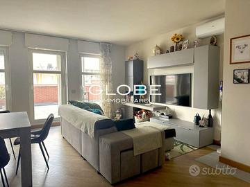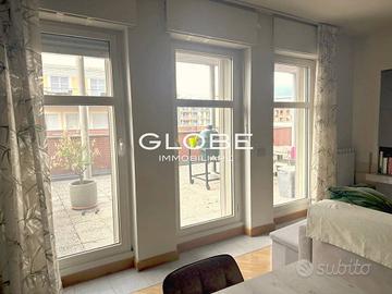 (188756230) - CIRIÉ - Centro In zona centrale, comoda a tutti i servizi, proponiamo in vendita un grazioso alloggio di mq 80 circa, situato al piano terzo e composto da: - ingresso su ampio soggiorno living con cucina a vista, - affaccio su terrazzo panoramico di mq 75 circa parzialmente coperto, ideale per pranzi all'aperto e momenti di relax, - disimpegno, - camera da letto con cabina armadio, - bagno moderno con rivestimento in resina. Riscaldamento autonomo e climatizzazione estate/inverno. Completano la proprietà una cantina al piano interrato. Soluzione ideale per chi cerca comfort, luminosità e uno spazio esterno esclusivo in pieno centro. Per informazioni: - info@globeimmobiliare.it Il presente documento non costituisce elemento contrattuale. - Classe: D - IPE: 112.50 kWh/mq anno